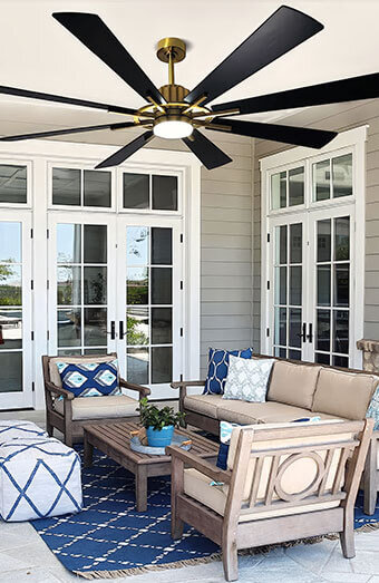 Installation of weather-rated ceiling fans for alfresco areas, patios, and verandahs, specifically designed to withstand Australian weather conditions.